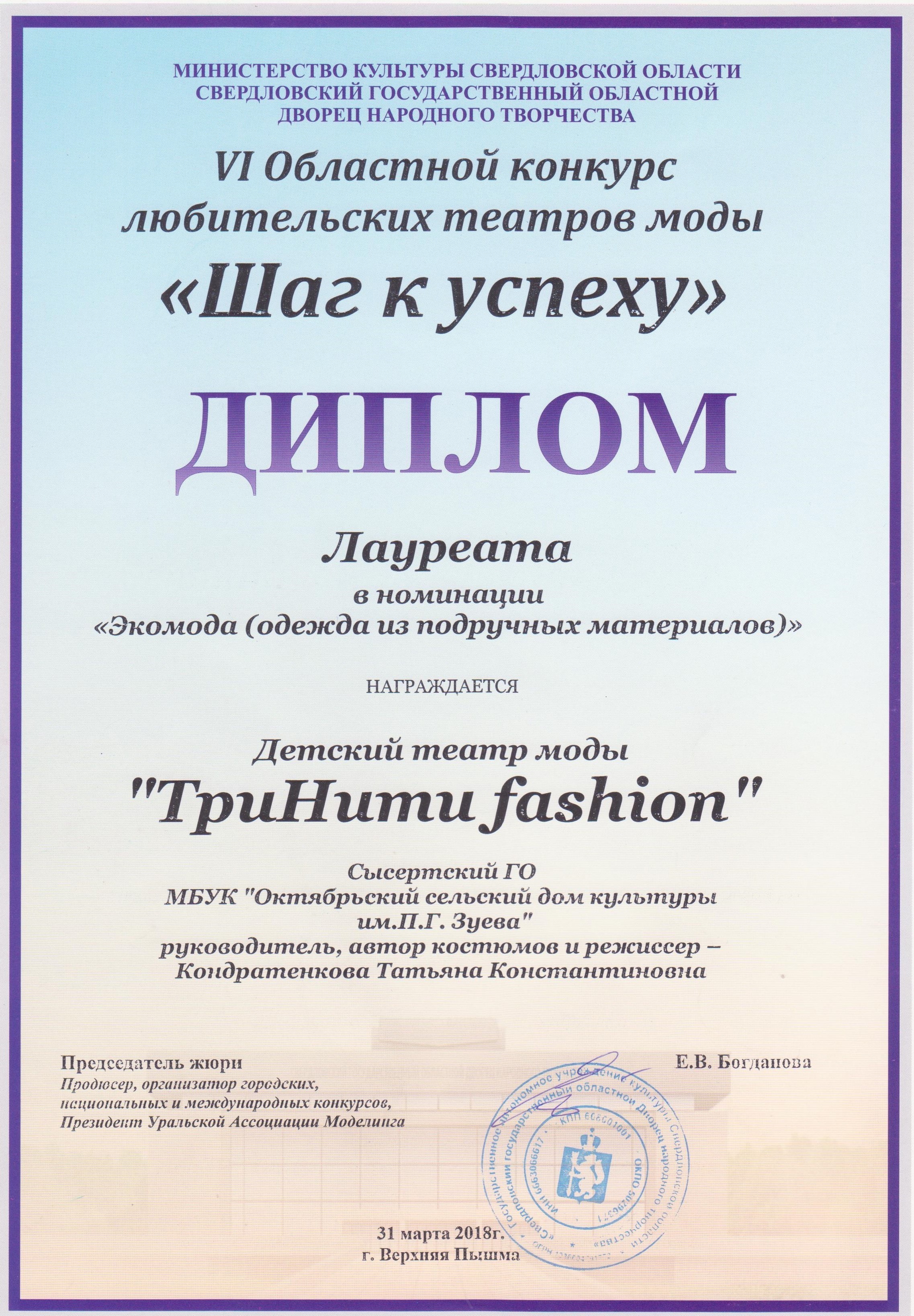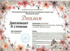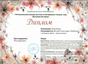 Детский театр моды «ТриНити Fashion» - это комплексная программа, включающая в себя: рукоделие, дизайн, основы шитья, ИЗО деятельность и многое другое. Дети из театра моды работают над общим делом, фантазируют, изобретают уникальные коллекции, овладевают старательностью, кропотливостью в изготовлении каждого элемента костюма, затем демонстрируют изготовленные своими руками изделия на подиуме и во время фотосессий.