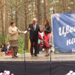 Увлекательные конкурсы провели для свадебных юбиляров. Пары, поднявшиеся на сцену, говорили комплименты, кричали как можно громче и дольше имена супругов и вспоминали дни рождения и размеры ног друг друга. Проводив со сцены семьи со стажем, ведущая В. А. Балыбердина поздравила Истоминых Дениса и Надежду, молодоженов Александра и Серафиму Махиевых, которые закрепили свой союз накануне.