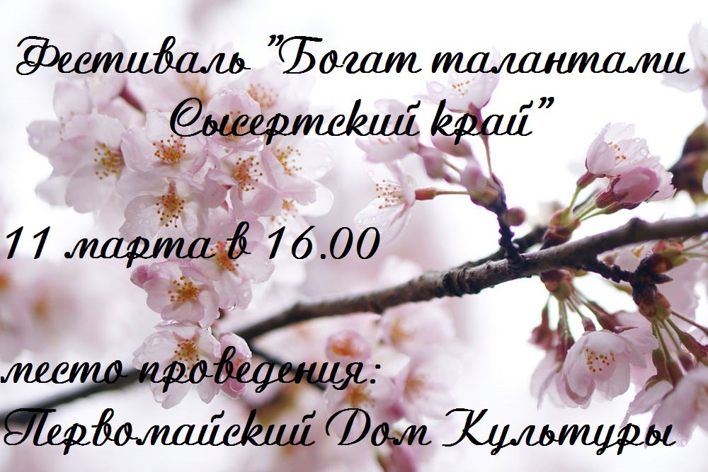 11 марта все коллективы художественной самодеятельности Октябрьского дома культуры приглашают вас на концертную программу "Это наша с тобою судьба, это наша с тобой биография" в рамках фестиваля "Богат талантами Сысертский край"!